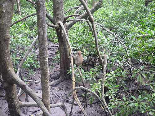Oleh kerana kawasannya agak luas, kami memilih untuk ke tanah penghujung sahaja. Jalan dibina untuk memudahkan pengunjung sampai. Perjalanan melalui hutan paya bakau dengan tanahnya yang lembut berselut tetapi terdapat pelbagai habitat seperti siput ketam dan ikan belacak ( agaknya ). Tetapi yang agak menakutkan ialah monyet-monyet juga ada berkeliaran mencari makanan.